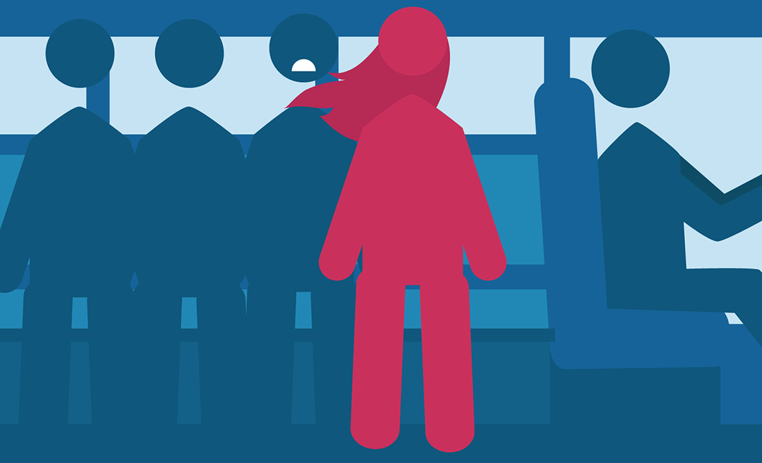 Give up your seat for the elderly or the pregnant. They would have the most difficulty dealing with a crowd of people.
